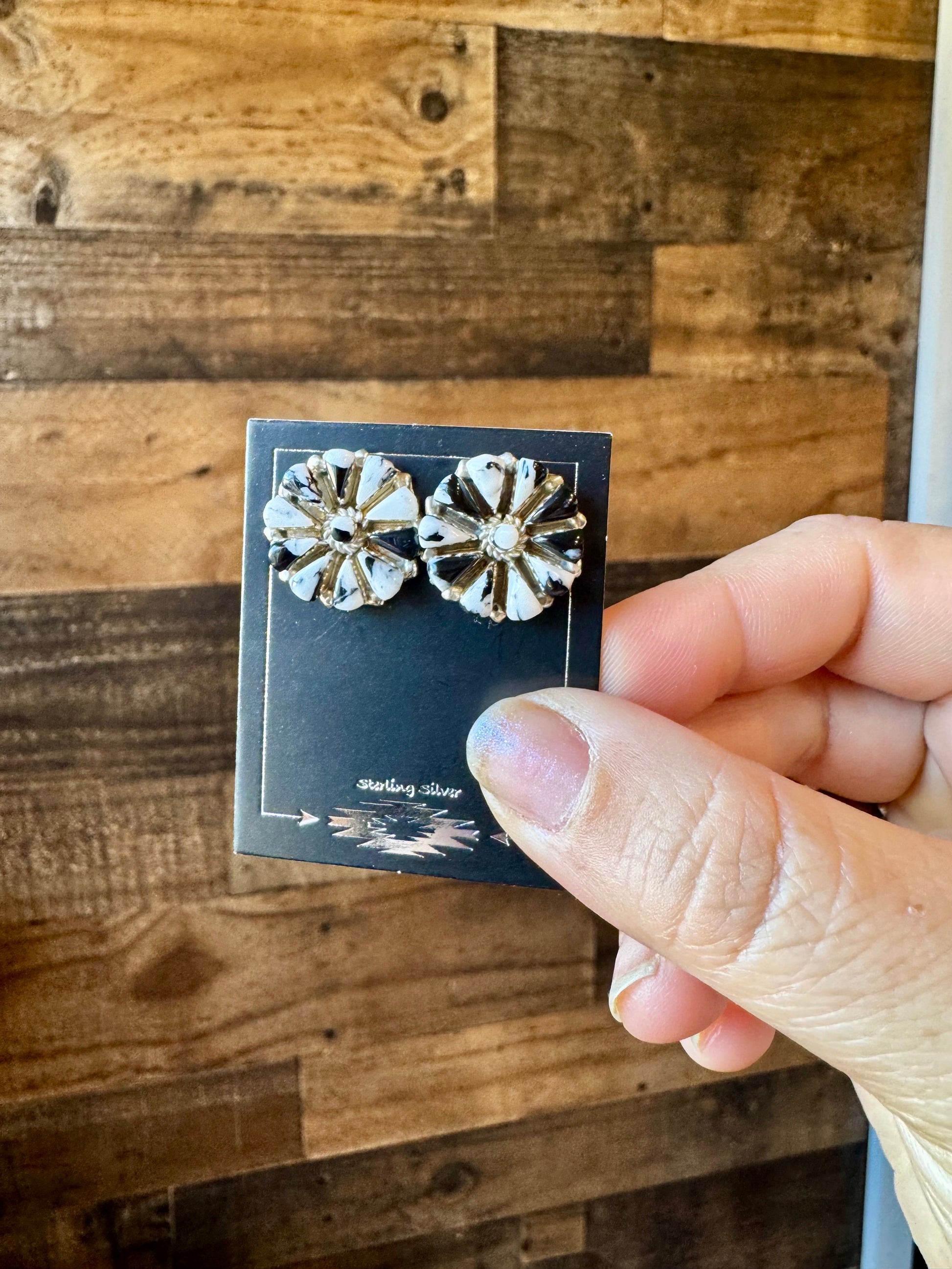 Cluster Earrings - Magnesite White Buffalo & Sterling Silver