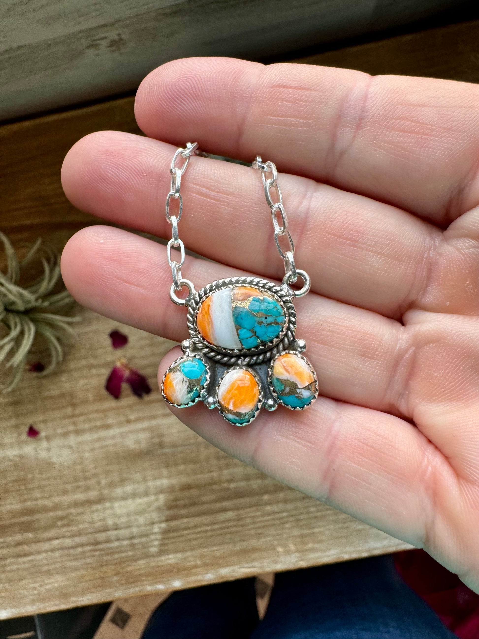 Cluster Necklace Spiny Turquoise & Sterling Silver
