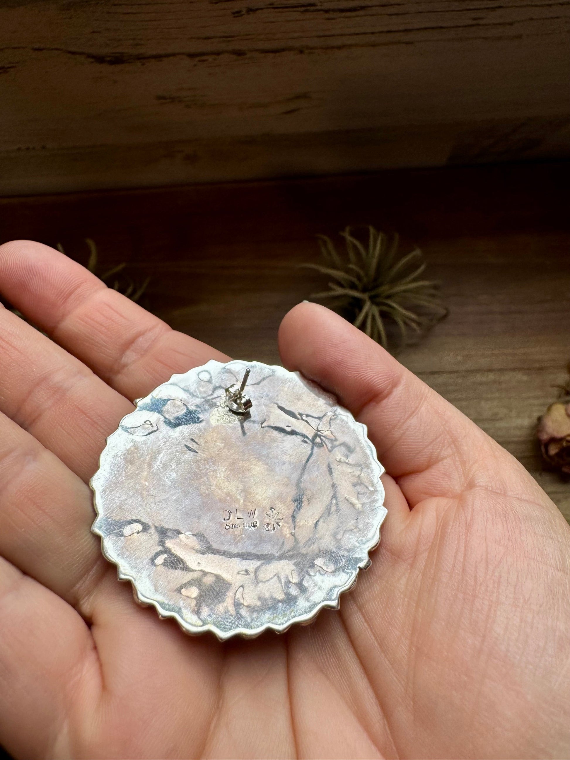 These handcrafted full cluster earrings feature a bold Pink Dahlia color set in solid sterling silver. Stamped JW (see photo) and made in the USA, each pair is full of vibrant color and timeless western style.
