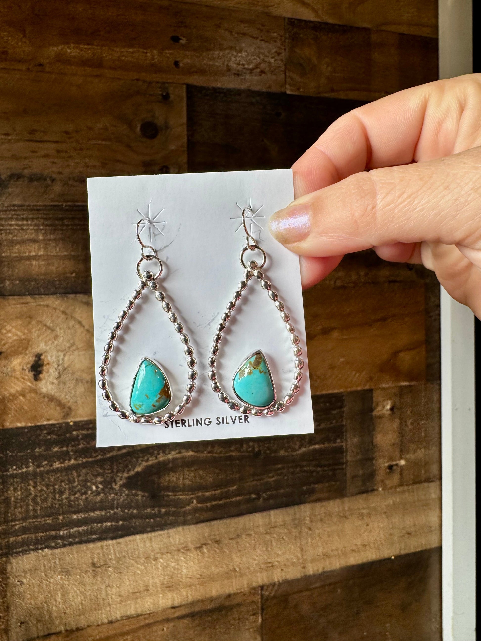 Long Dangle Earrings Hoop Turquoise & Sterling Silver Option II