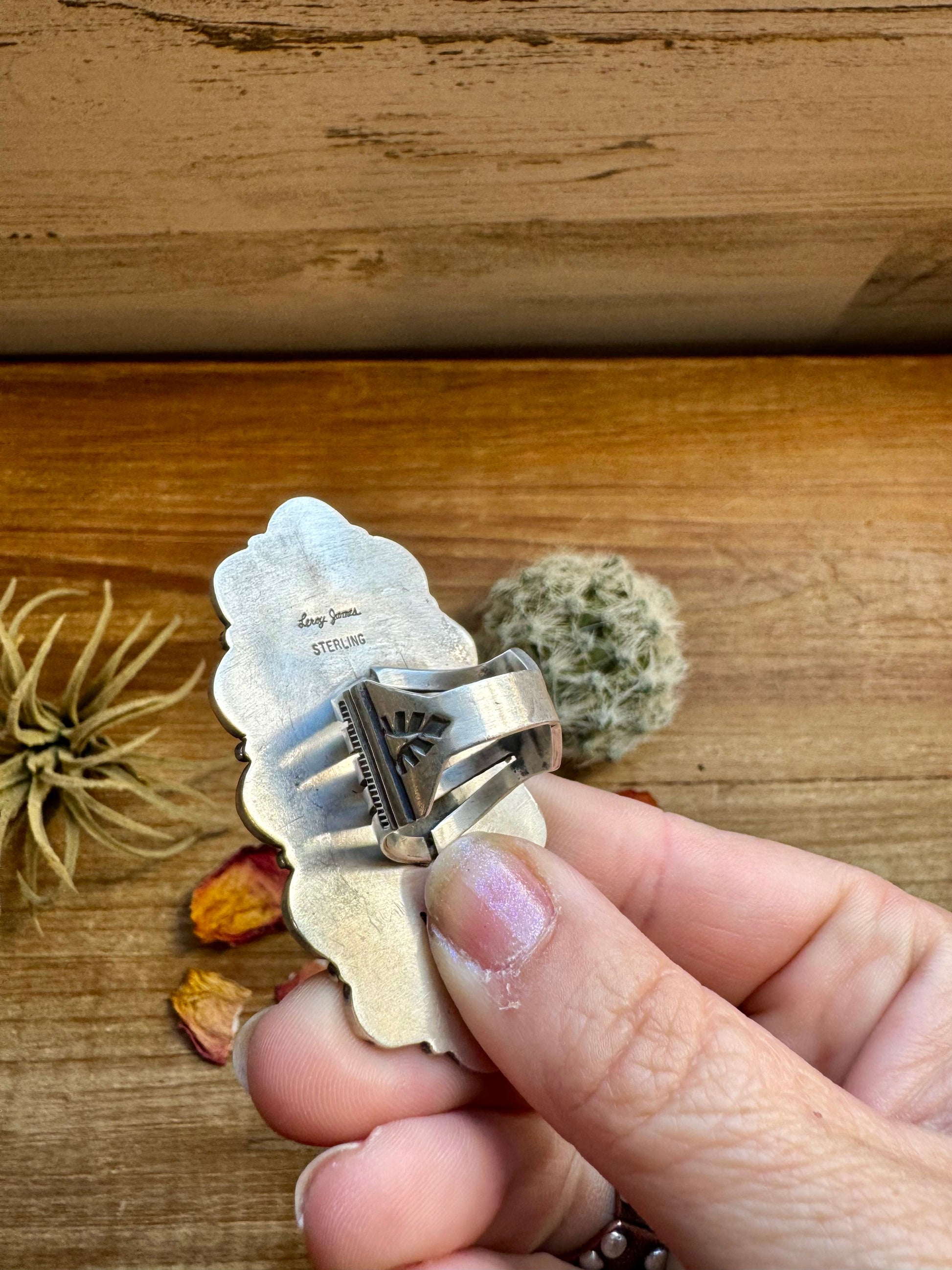 Long Ring- size 9- Kingman Turquoise ring & Sterling Silver