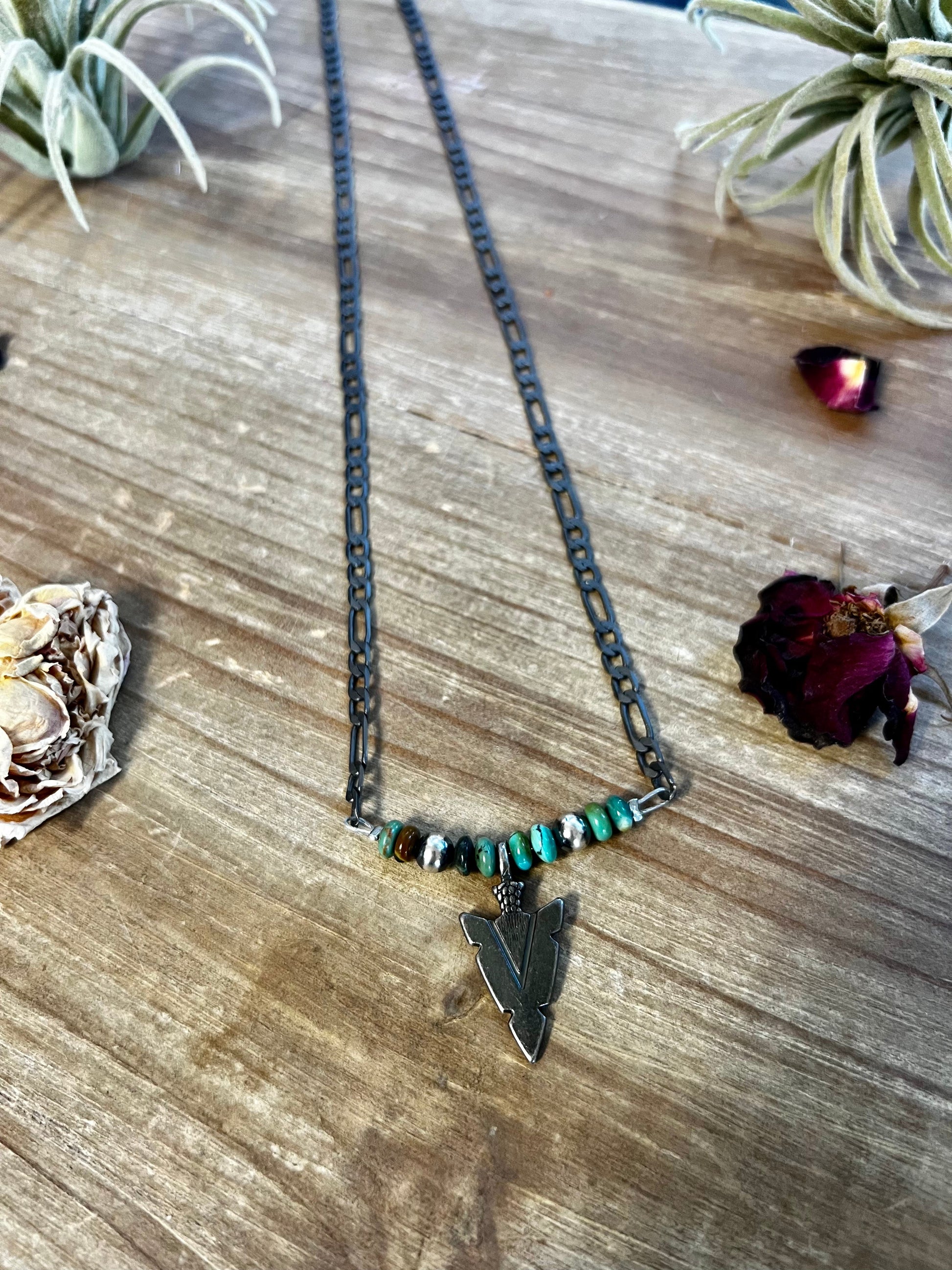 Men black chain with arrow and real turquoise