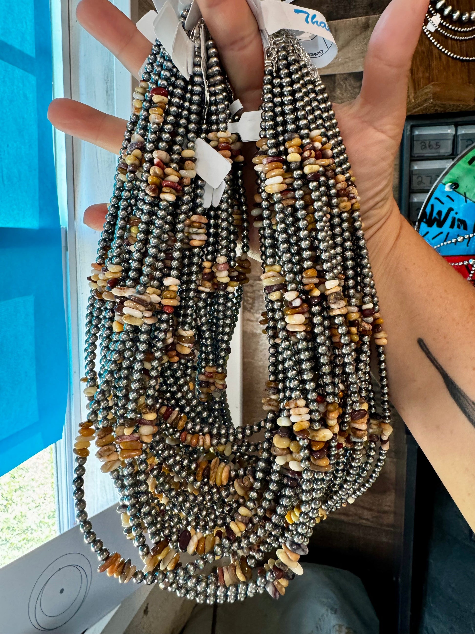 Nevada Opal & Sterling Silver Pearl Necklace – 4mm – Handmade by The Bijoux FAB – 19”