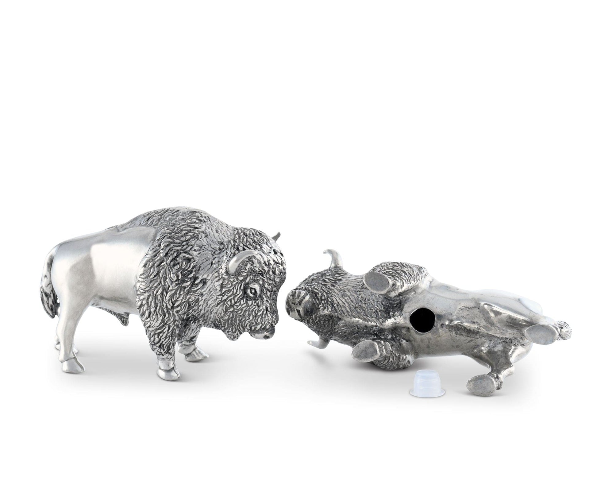 Vagabond House's Bison Salt and Pepper Set is crafted in richly detailed luxury grade pewter. Accurately detailed from their solid hooves to the tips of their horns, this set is a perfect table accent for a western ranch themed celebration or home.