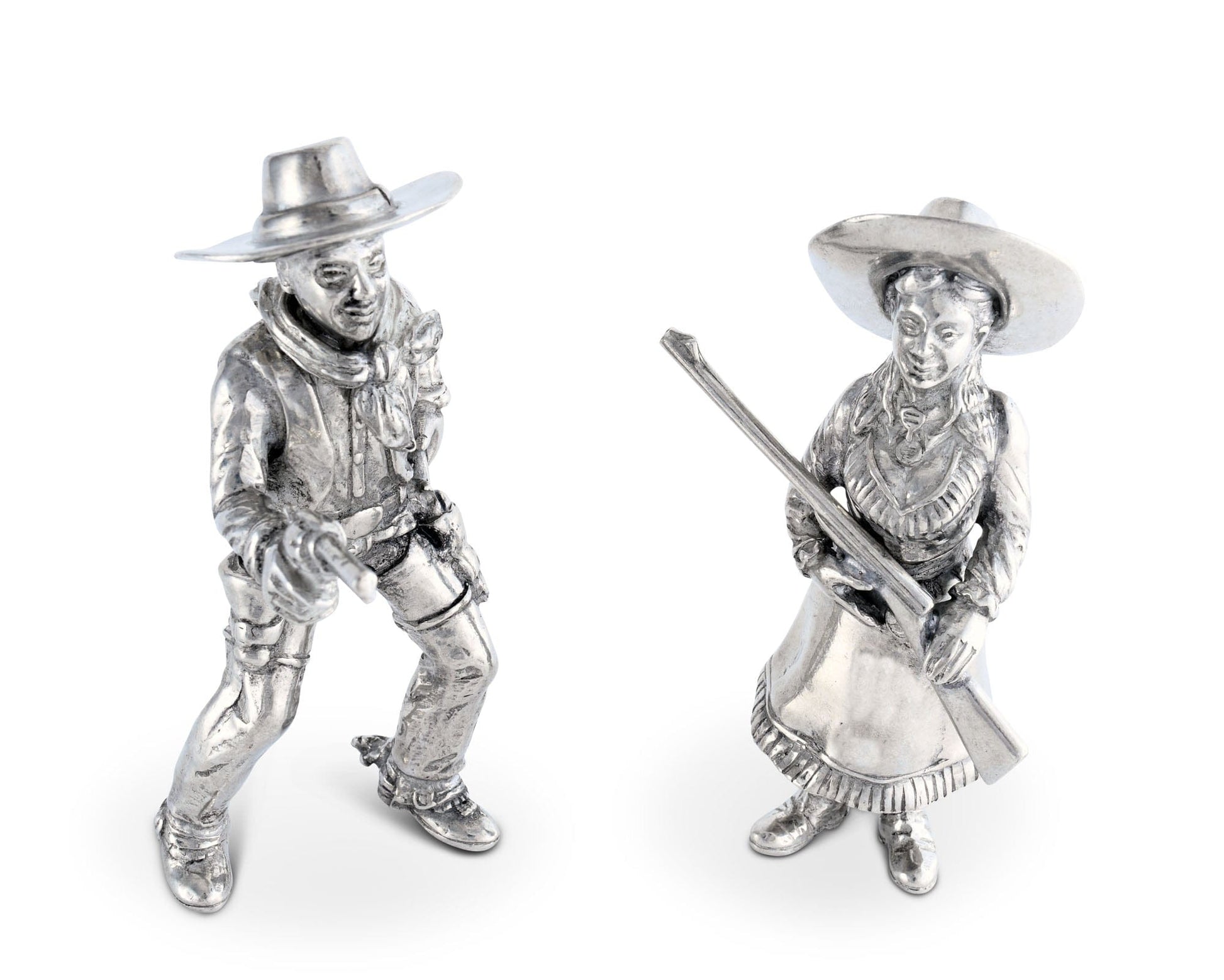 Our cute salt & pepper set couple, Annie Oakley and Buffalo Bill are ready to bring their Wild West Show to your table. This couple is a great accent to set the mood for a backyard barbeque or country kitchen. Salt & Pepper set collectors will love receiving them as a gift.